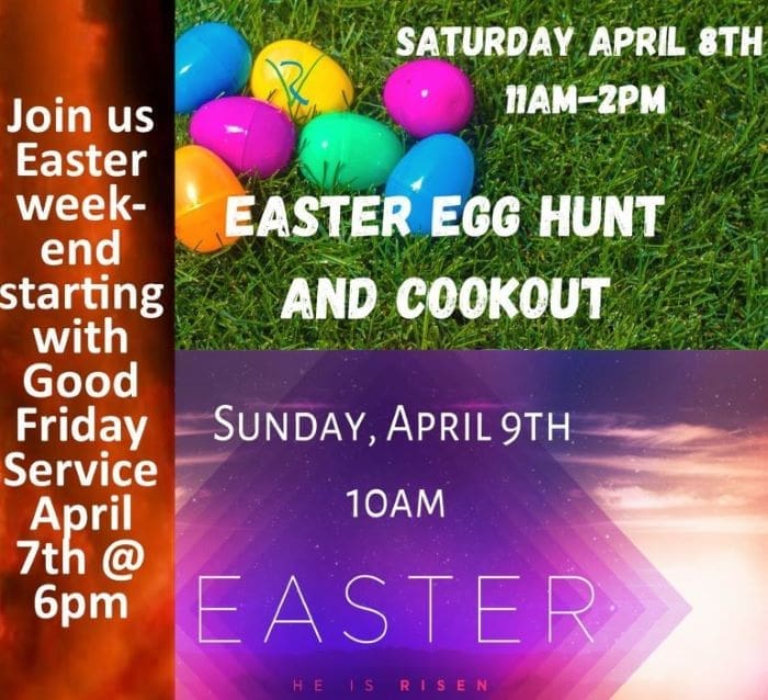 Saturday April 8th we’ll be having a fun day with an Egg Hunt and Cookout. Starts at 11am till 2pm.