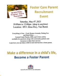 is hold a Foster Care Parent Recruitment Event on Saturday, May 6th 2023. It’s free and you can drop in anytime between 10am and 12noon.