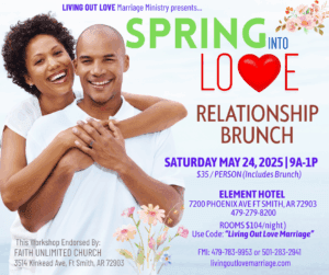 Faith Unlimited Church is hosting the “Spring Into Love Relationship Brunch” Saturday, May 24thm 9am-1pm, at Element Hotel, 7200 Phoenix in Fort Smith.